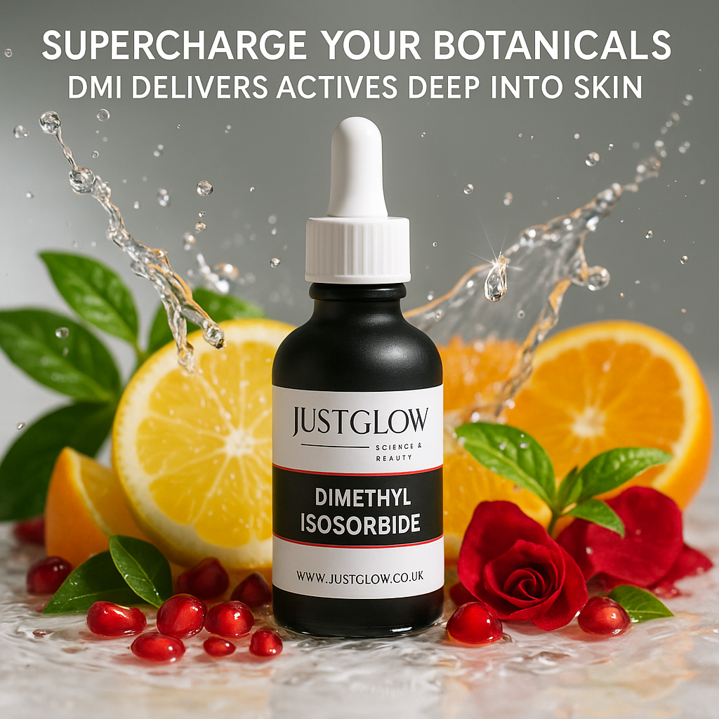 Dimethyl Isosorbide (DMI) is a clear, versatile solvent that plays a key role in modern cosmetic formulations. It is primarily used to dissolve and stabilise active ingredients while enhancing their penetration into the skin. This makes it especially valuable for delivering ingredients like Vitamin C derivatives, Ferulic Acid, AHAs, BHAs, and botanical actives more effectively. In skincare, DMI helps improve product performance and stability, making it a staple for formulators who want reliable and consistent results.